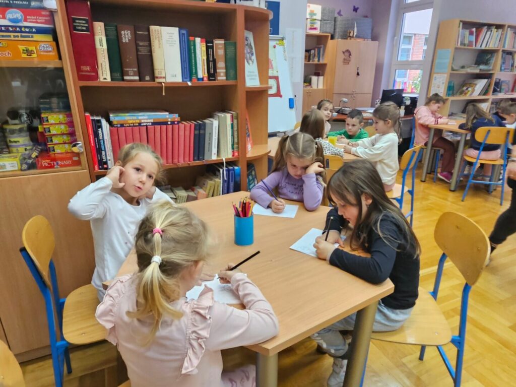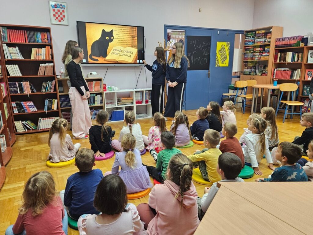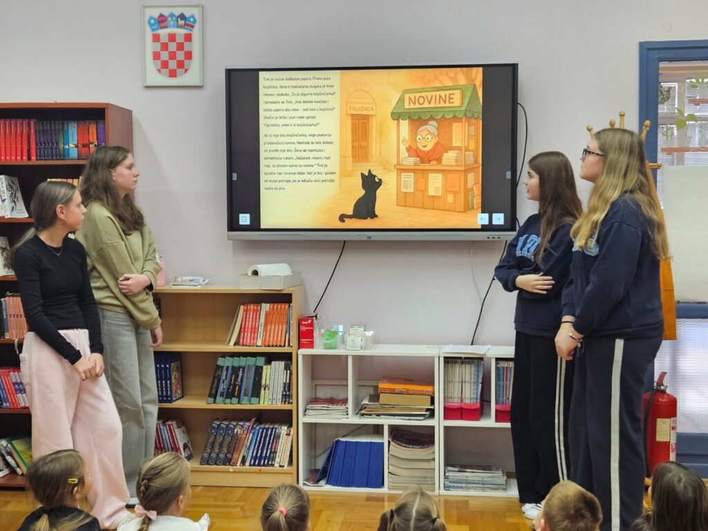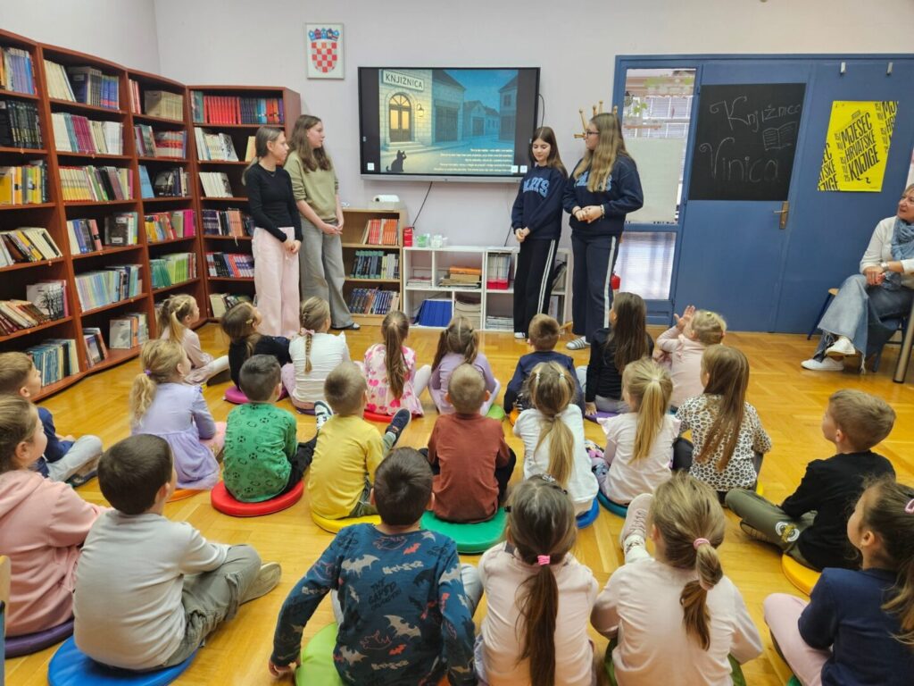 Školsku knjižnicu Osnovne škole Vinica 23.10.2025. povodom Mjeseca hrvatske knjige posjetila je vesela ekipa – Ježići, predškolska grupa iz Dječjeg vrtića Vinica. Dobrodošlicu Ježićima su poželjele ravnateljica Mirjana Jambriško i knjižničarka Dragana Belščak. Poseban dio posjeta bilo je čitanje priče. Vrijedne volonterke Sara, Ema, Gabrijela i Dora pročitale su im zanimljivu priču “Oprostite, jeste li vi knjižničarka?”. Ježići su uživali u priči i pokazali veliko zanimanje za knjige. Nadamo se da će uživati u čitanju i kad postanu školarci.