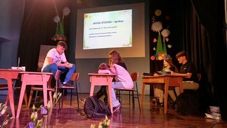 U žanru igrokaza prvu nagradu osvojila je Dora Biškup, učenica 8. razreda za rad „Tko je bez grijeha“ (mentorica Andrijana Kušinec). Učenici osmih razreda – Dora Biškup, Gabrijela Kapljić, Melani Leskovar, Toni Rožmarić, Emanuel Vrabec i Maxim Ladika izveli su nagrađeni igrokaz pred publikom.