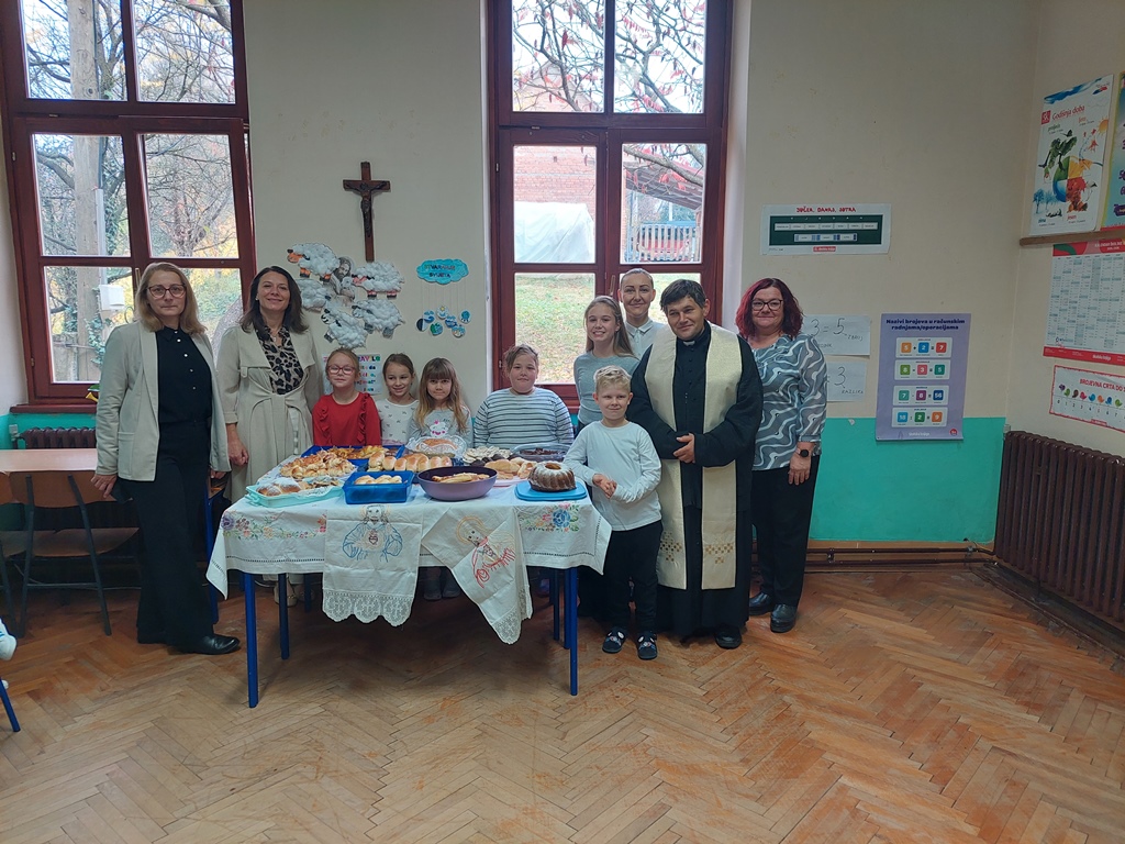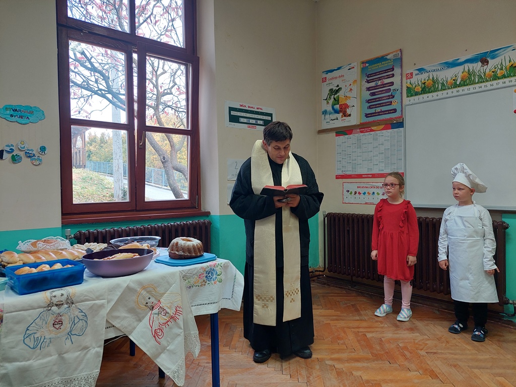 Nakon programa, velečasni Mario Filipović, župnik župe svete Barbare u Natkrižovljanu, blagoslovio je pripremljene proizvode koje su učenici i njihove obitelji s ljubavlju donijeli.