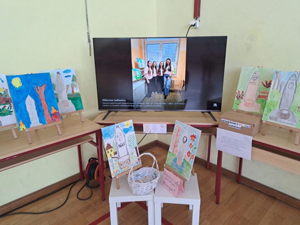 U sklopu projekta „Generacije u bojama zavičaja“ treća, završna aktivnost realizirana je svečanim otvorenjem izložbe na Dan škole, u četvrtak 23. travnja. Izložba predstavlja krunu cjelokupnog projekta te prikazuje radove nastale tijekom prethodnih aktivnosti.