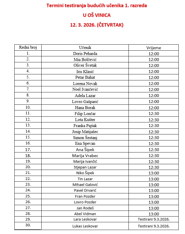 Na Županijskom natjecanju iz povijesti, održanom 3. ožujka 2026. u VI. osnovnoj školi u Varaždinu Osnovnu školu Vinica predstavljali su učenici 8. razreda David Peharda, Lorena Mihalić, Petar Kostanjevac, Sara Tenko i Mia Matijašec uz mentorstvo učiteljice Marije...