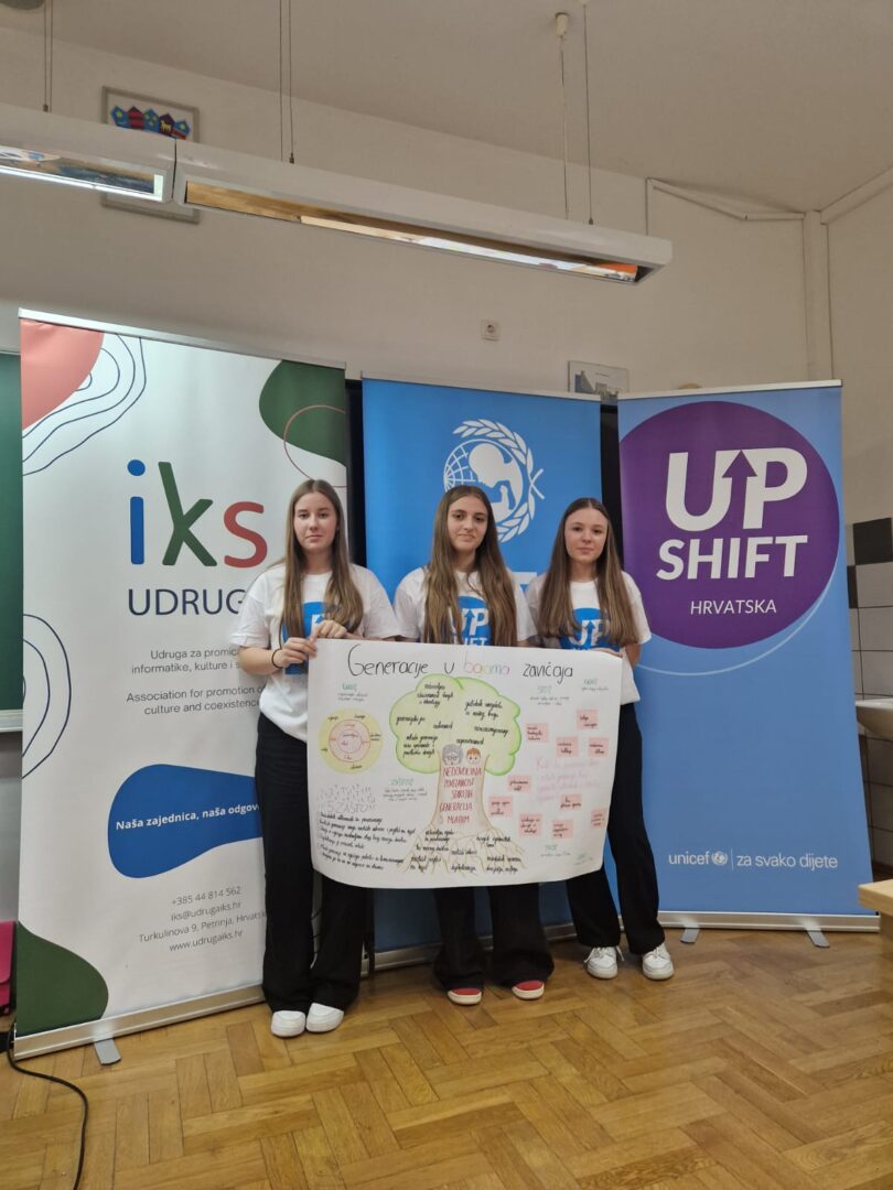 Od 13. do 15. listopada učenice osmog razreda Klara Borić, Mia Matijašec i Lorena Mihalić u pratnji mentorice Adriane Bencek sudjelovale su na UPSHIFT radionicama u sklopu projekta Građanskog odgoja, gdje su kroz tri dana timskog rada razvijale vlastite projektne ideje usmjerene na rješavanje problema u lokalnoj zajednici.
