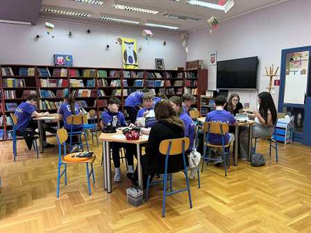 Umjesto klasičnog sata iz Hrvatskoga jezika za učenike sedmih razreda, nastava se 23. ožujka nakratko preselila u knjižnicu. Učenici su zajedno s učiteljicom Larom i knjižničarkom Draganom obilježili Svjetski dan pjesništva i to na način koji bi oduševio i najveće pjesnike.